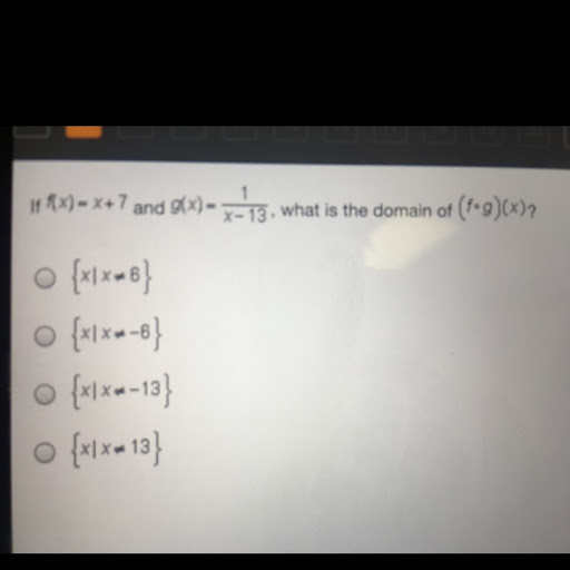 If F(X)=X+7 And G(X)=1/X-13 What Is The Domain Of (F*G)(X)
